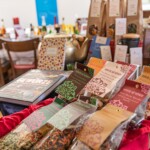 Viele Leseexemplare liegen auf den Tischen. Zu den Kochbüchern kann man passende Gewürze erwerben und leckere Tees haben wir auch.